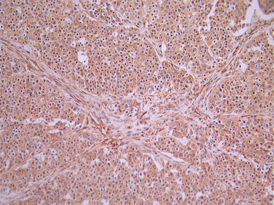 IHC image of CSB-RA179059A0HU diluted at 1:100 and staining in paraffin-embedded human liver cancer performed on a Leica BondTM system. After dewaxing and hydration, antigen retrieval was mediated by high pressure in a citrate buffer (pH 6.0). Section was blocked with 10% normal goat serum 30min at RT. Then primary antibody (1% BSA) was incubated at 4°C overnight. The primary is detected by a Goat anti-rabbit polymer IgG labeled by HRP and visualized using 0.05% DAB.