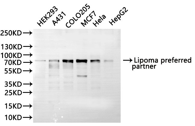 All lanes: Lipoma preferred partner antibody at 1:1000