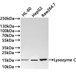 Positive WB detected in: HL-60 whole cell lysate(30μg), HepG2 whole cell lysate(30μg), Raw264.7 whole cell lysate(30μg)