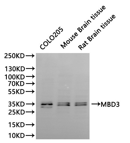 All lanes: MBD3 antibody at 1:1000