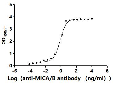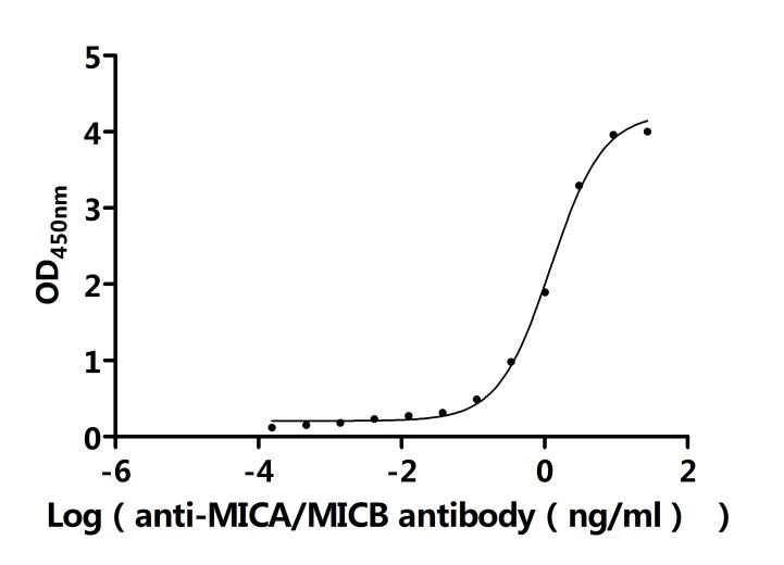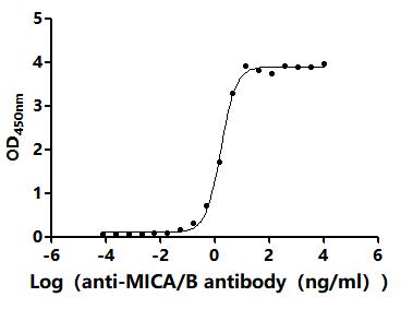 Activity: Measured by its binding ability in a functional ELISA.Immobilized Human MICB(CSB-MP5608HU) at 2 μg/mL can bind Anti-MICA/B recombinant antibody. The EC50 is 0.9180-1.062 ng/mL. -