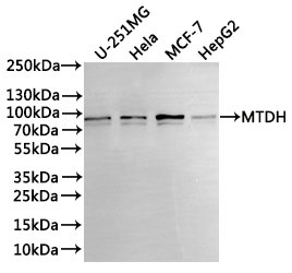 All lanes: MTDH antibody at 1:1000