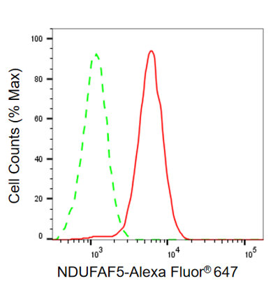 Flow cytometric analysis of NDUFAF5 expression in C2C12 cells using NDUFAF5 antibody. Green, isotype control; red, NDUFAF5.