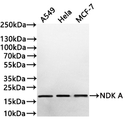Positive WB detected in: A549 whole cell lysate(30μg), Hela whole cell lysate(30μg), MCF-7 whole cell lysate(30μg)