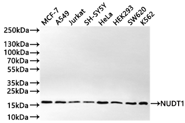 Positive WB detected in: MCF-7 whole cell lysate(30μg), A549 whole cell lysate(30μg), Jurkat whole cell lysate(30μg), SH-SY5Y whole cell lysate(30μg), HeLa whole cell lysate(30μg), HEK293 whole cell lysate(30μg), SW620 whole cell lysate(30μg), K562 whole cell lysate(30μg)