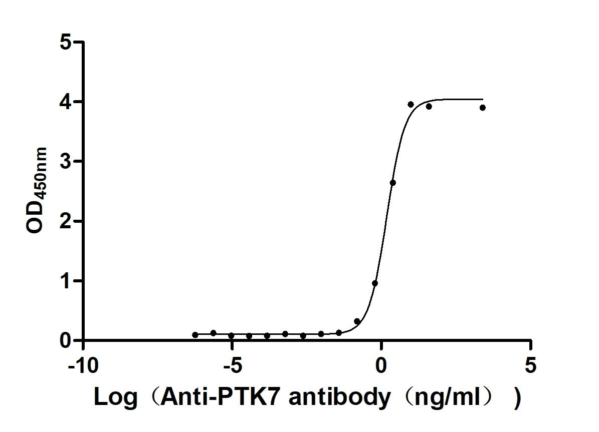 Activity: Measured by its binding ability in a functional ELISA. Immobilized Human PTK7(CSB-MP622651HU2) at 2 μg/mL can bind Anti-PTK7 recombinant antibody. The EC50 is 0.3675 - 0.6584 ng/mL. -