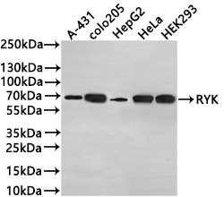 D3S3195 antibody; ERK 3 antibody; Hydroxyaryl protein kinase antibody; JTK 5 antibody; JTK 5A antibody; JTK5 antibody; JTK5A antibody; JTK5A protein tyrosine kinase antibody; receptor like tyrosine kinase antibody; receptor like tyrosine kinase precursor antibody; RYK 1 antibody; Ryk antibody; RYK_HUMAN antibody; RYK1 antibody; Tyrosine protein kinase RYK antibody; Tyrosine protein kinase RYK precursor antibody; Tyrosine-protein kinase RYK antibody; Vik antibody