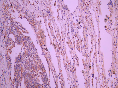 IHC image of CSB-RA976720A0HU diluted at 1:100 and staining in paraffin-embedded human lung cancer performed on a Leica BondTM system. After dewaxing and hydration, antigen retrieval was mediated by high pressure in a citrate buffer (pH 6.0). Section was blocked with 10% normal goat serum 30min at RT. Then primary antibody (1% BSA) was incubated at 4°C overnight. The primary is detected by a Goat anti-rabbit polymer IgG labeled by HRP and visualized using 0.05% DAB.