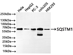 別名:A170 antibody; DMRV antibody; EBI 3 associated protein of 60 kDa antibody; EBI 3 associated protein p60 antibody; EBI3 associated protein of 60 kDa antibody; EBI3 associated protein p60 antibody; EBI3-associated protein of 60 kDa antibody; EBIAP antibody; FTDALS3 antibody; MGC127197 antibody; ORCA antibody; OSF-6 antibody; Osi antibody; OSIL antibody; Oxidative stress induced like antibody; p60 antibody; p62 antibody; p62B antibody; Paget disease of bone 3 antibody; PDB 3 antibody; PDB3 antibody; Phosphotyrosine independent ligand for the Lck SH2 domain of 62 kDa antibody; Phosphotyrosine independent ligand for the Lck SH2 domain p62 antibody; Phosphotyrosine-independent ligand for the Lck SH2 domain of 62 kDa antibody; PKC-zeta-interacting protein antibody; Protein kinase C-zeta-interacting protein antibody; Sequestosome 1 antibody; Sequestosome-1 antibody; SQSTM 1 antibody; SQSTM_HUMAN antibody; Sqstm1 antibody; STAP antibody; STONE14 antibody; Ubiquitin binding protein p62 antibody; Ubiquitin-binding protein p62 antibody; ZIP 3 antibody; ZIP antibody; ZIP3 antibody