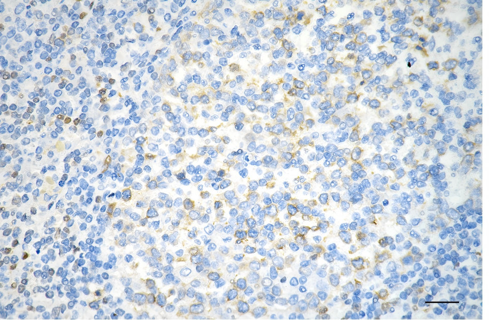 Immunohistochemistry was performed on paraffin-embedded human tonsillitis using TACC3 antibody. Antigen retrieval was done in sodium citrate buffer (pH 6.0). DAB was used for detection, with hematoxylin counterstaining. Images were acquired using a Nikon Ci-L Plus microscope (40× objective). Scale bar: 25 μm.