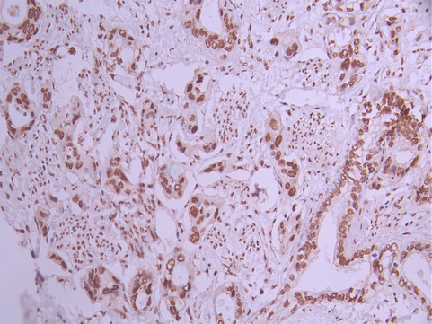 • IHC image of CSB-RA899164A0HU diluted at 1:100 and staining in paraffin-embedded human cervical cancer performed on a Leica BondTM system. After dewaxing and hydration, antigen retrieval was mediated by high pressure in a citrate buffer (pH 6.0). Section was blocked with 10% normal goat serum 30min at RT. Then primary antibody (1% BSA) was incubated at 4°C overnight. The primary is detected by a Goat anti-rabbit polymer IgG labeled by HRP and visualized using 0.05% DAB.
