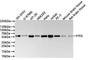 All lanes: TFG antibody at 1:1000