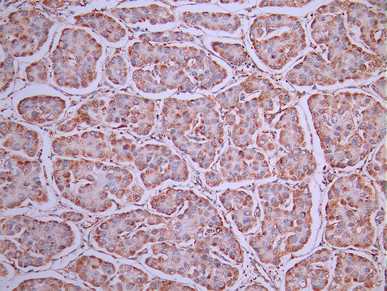 • IHC image of CSB-RA160607A0HU diluted at 1:100 and staining in paraffin-embedded human liver cancer performed on a Leica BondTM system. After dewaxing and hydration, antigen retrieval was mediated by high pressure in a citrate buffer (pH 6.0). Section was blocked with 10% normal goat serum 30min at RT. Then primary antibody (1% BSA) was incubated at 4°C overnight. The primary is detected by a Goat anti-rabbit polymer IgG labeled by HRP and visualized using 0.05% DAB.