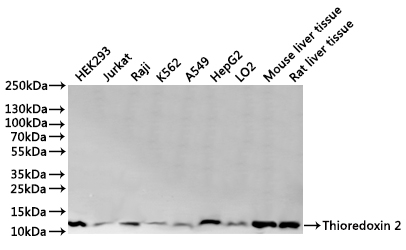 All lanes: Thioredoxin 2 antibody at 1:1000