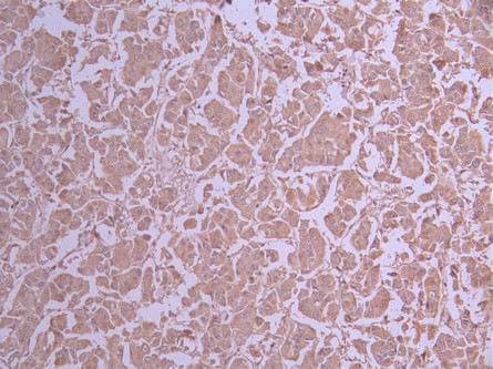 IHC image of CSB-RA991252A0HU diluted at 1:100 and staining in paraffin-embedded human breast cancer performed on a Leica BondTM system. After dewaxing and hydration, antigen retrieval was mediated by high pressure in a citrate buffer (pH 6.0). Section was blocked with 10% normal goat serum 30min at RT. Then primary antibody (1% BSA) was incubated at 4°C overnight. The primary is detected by a Goat anti-rabbit polymer IgG labeled by HRP and visualized using 0.05% DAB.