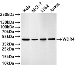 Positive WB detected in: HeLa whole cell lysate(30μg), MCF-7 whole cell lysate(30μg), K562 whole cell lysate(30μg), Jurkat whole cell lysate(30μg)