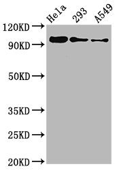 Positive WB detected in Hela whole cell lysate, 293 whole cell lysate, A549 whole cell lysate