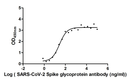 Activity: Measured by its binding ability in a functional ELISA. Immobilized SARS-CoV-2-S (CSB-MP3324GMY) at 2 μg/ml can bind SARS-CoV-2-S Antibody, the EC50 is 42.83 ng/ml. -