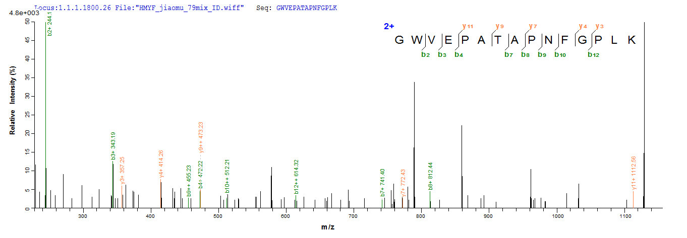 Based on the SEQUEST from database of E.coli host and target protein, the LC-MS/MS Analysis result of CSB-RP076174Ba could indicate that this peptide derived from E.coli-expressed Acinetobacter baumannii ndm-1.
