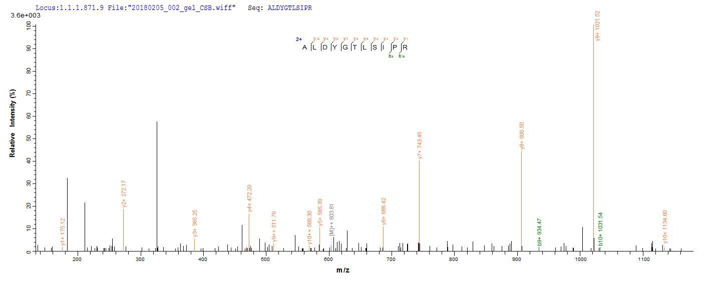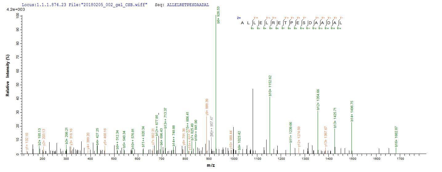 Based on the SEQUEST from database of E.coli host and target protein, the LC-MS/MS Analysis result of CSB-EP453002AZF could indicate that this peptide derived from E.coli-expressed Akkermansia muciniphila (strain ATCC BAA-835 / Muc) ruvC.