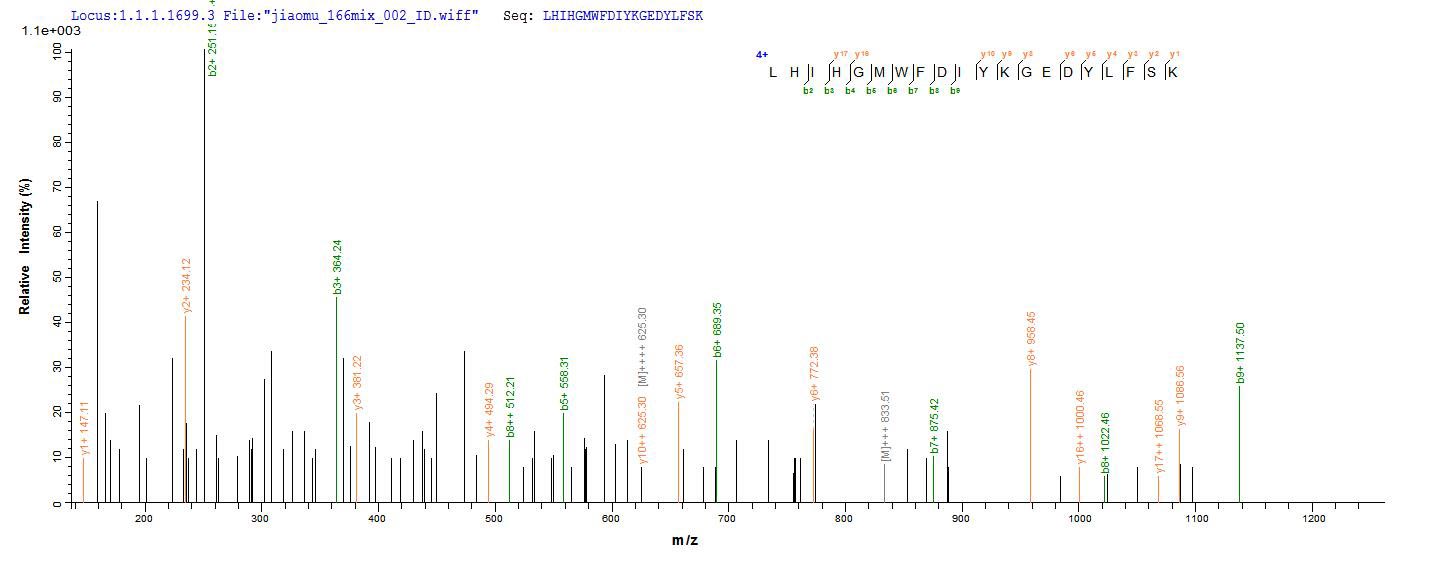 Based on the SEQUEST from database of E.coli host and target protein, the LC-MS/MS Analysis result of CSB-EP632545CXY could indicate that this peptide derived from E.coli-expressed Caenorhabditis elegans bca-1.