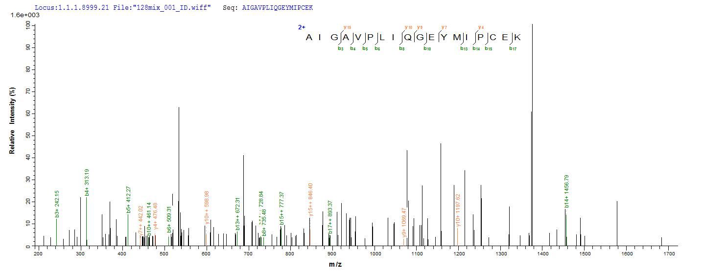 Based on the SEQUEST from database of E.coli host and target protein, the LC-MS/MS Analysis result of CSB-EP006187DXU could indicate that this peptide derived from E.coli-expressed Cricetulus griseus (Chinese hamster) (Cricetulus barabensis griseus) CTSD.