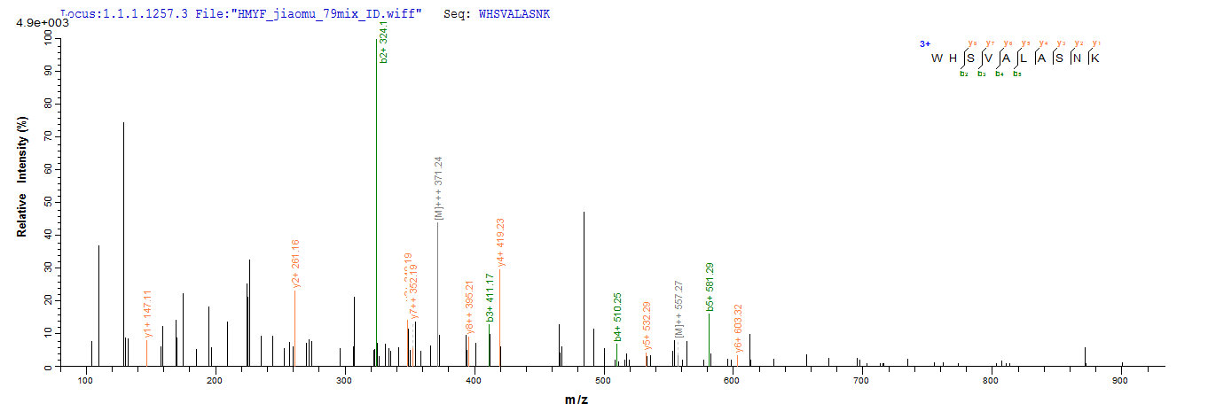 Based on the SEQUEST from database of E.coli host and target protein, the LC-MS/MS Analysis result of CSB-EP521201DO could indicate that this peptide derived from E.coli-expressed Canis familiaris (Dog) (Canis lupus familiaris) Minor allergen Can f 2.
