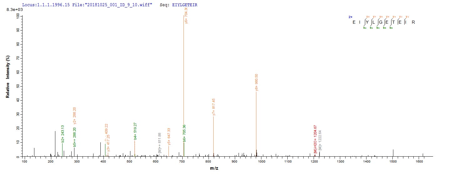 Based on the SEQUEST from database of E.coli host and target protein, the LC-MS/MS Analysis result of CSB-EP517722EJV could indicate that this peptide derived from E.coli-expressed Eisenia fetida (Red wiggler worm) N/A.