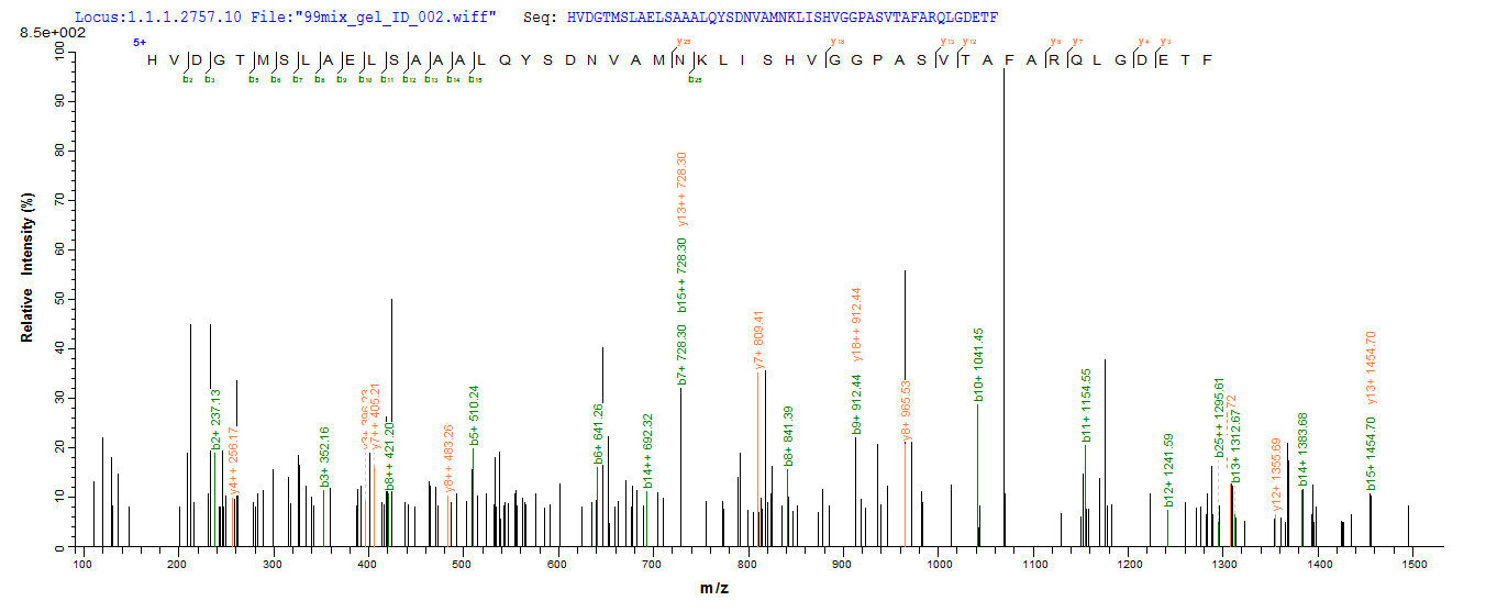 Based on the SEQUEST from database of E.coli host and target protein, the LC-MS/MS Analysis result of CSB-EP333368ENL could indicate that this peptide derived from E.coli-expressed Escherichia coli bla.