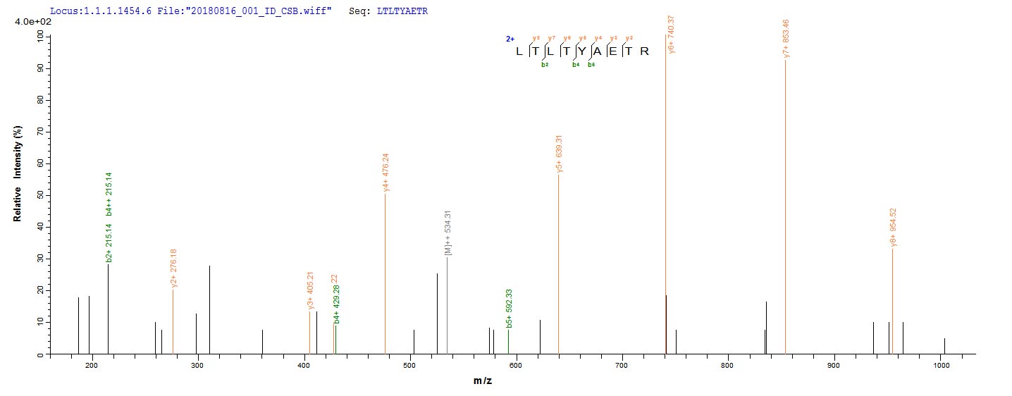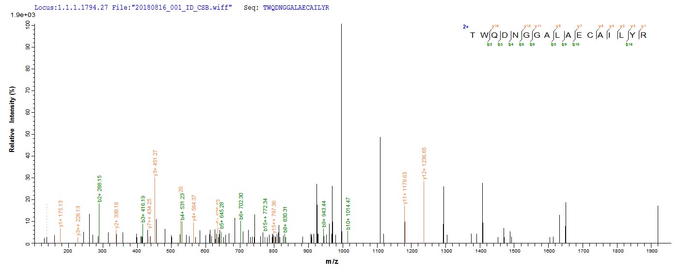 Based on the SEQUEST from database of E.coli host and target protein, the LC-MS/MS Analysis result of CSB-EP360936ENV could indicate that this peptide derived from E.coli-expressed Escherichia coli (strain K12) uvrD.