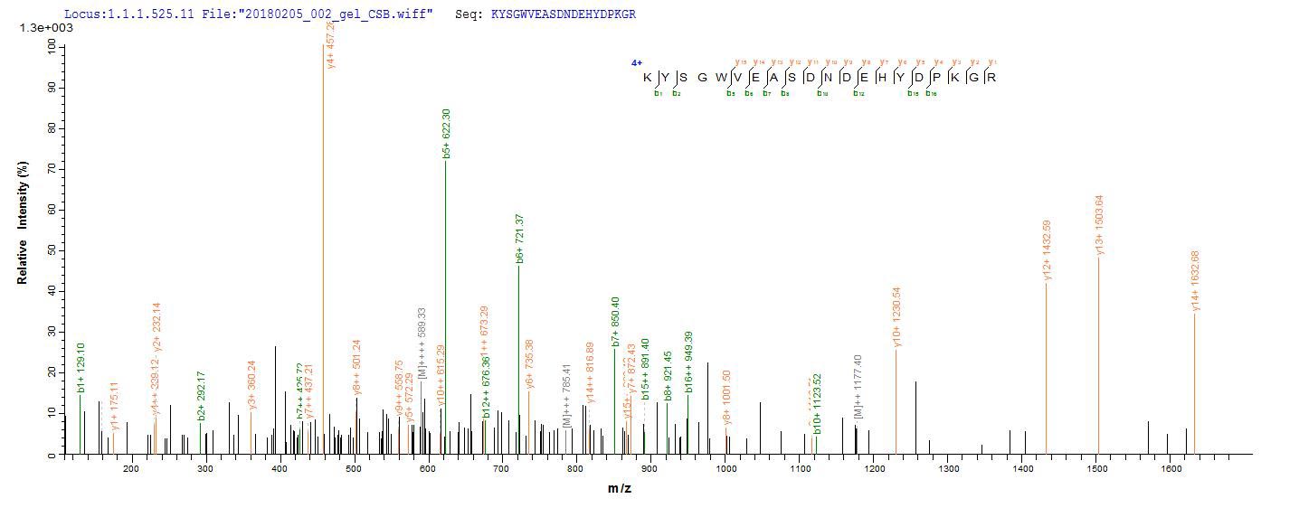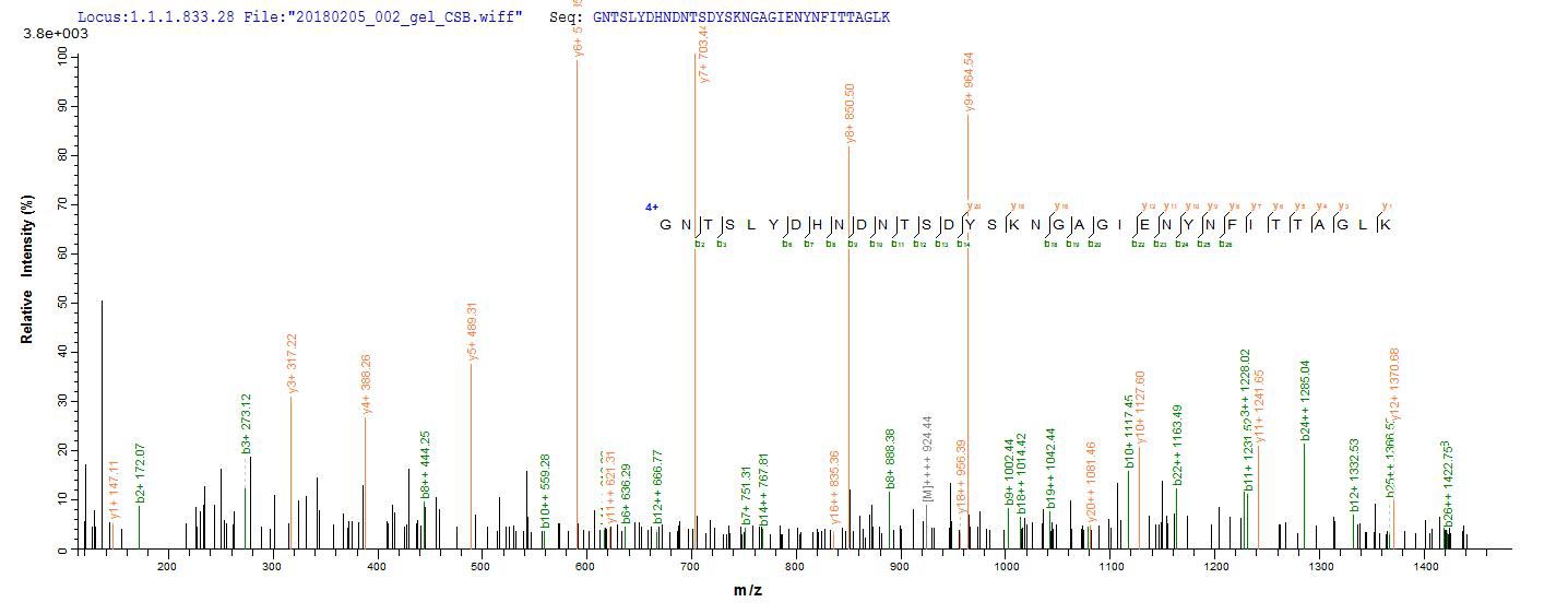 Based on the SEQUEST from database of E.coli host and target protein, the LC-MS/MS Analysis result of CSB-EP348292EOD(M) could indicate that this peptide derived from E.coli-expressed Escherichia coli O157:H7 ompT.