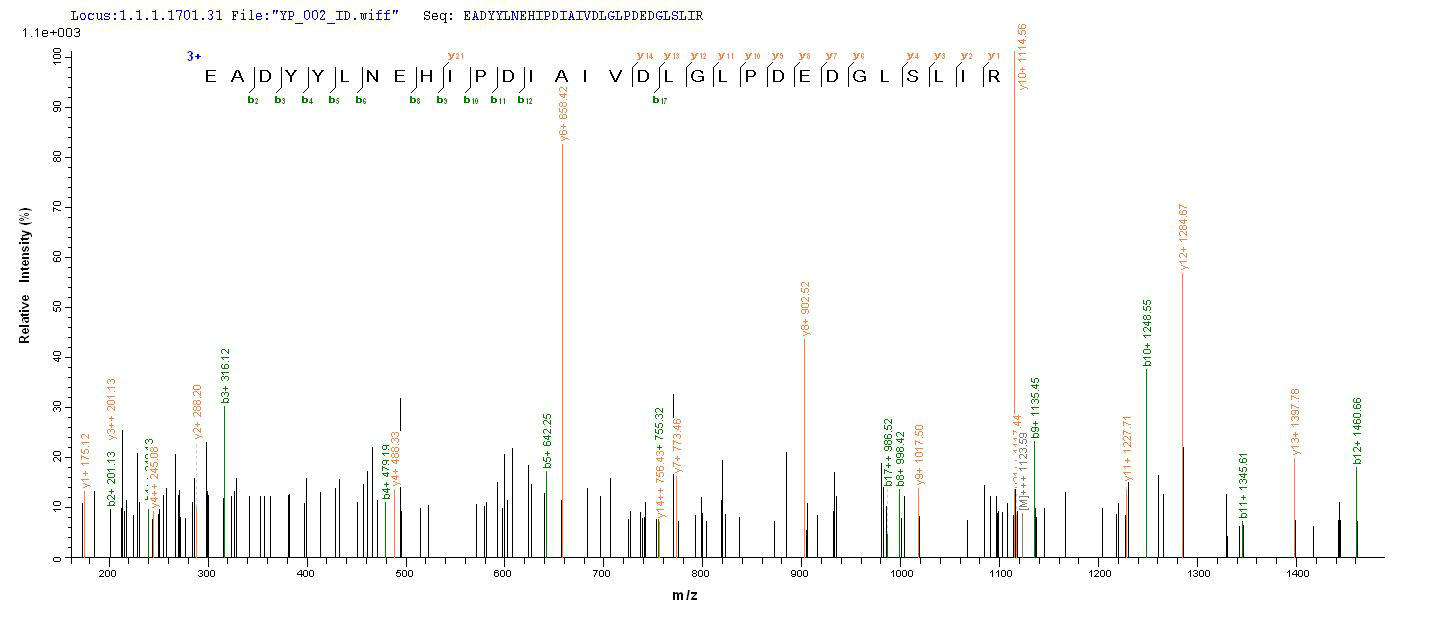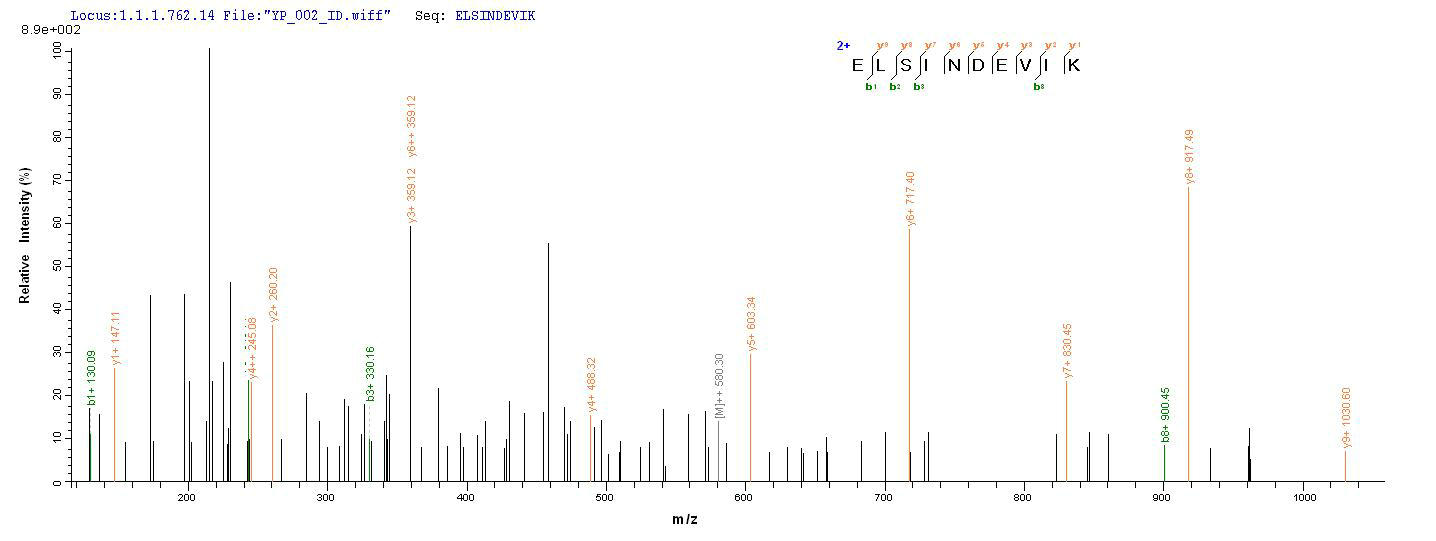 Based on the SEQUEST from database of Mammalian Cell host and target protein, the LC-MS/MS Analysis result of CSB-MP326097ENV could indicate that this peptide derived from Mammalian Cell-expressed Escherichia coli (strain K12) phoP.