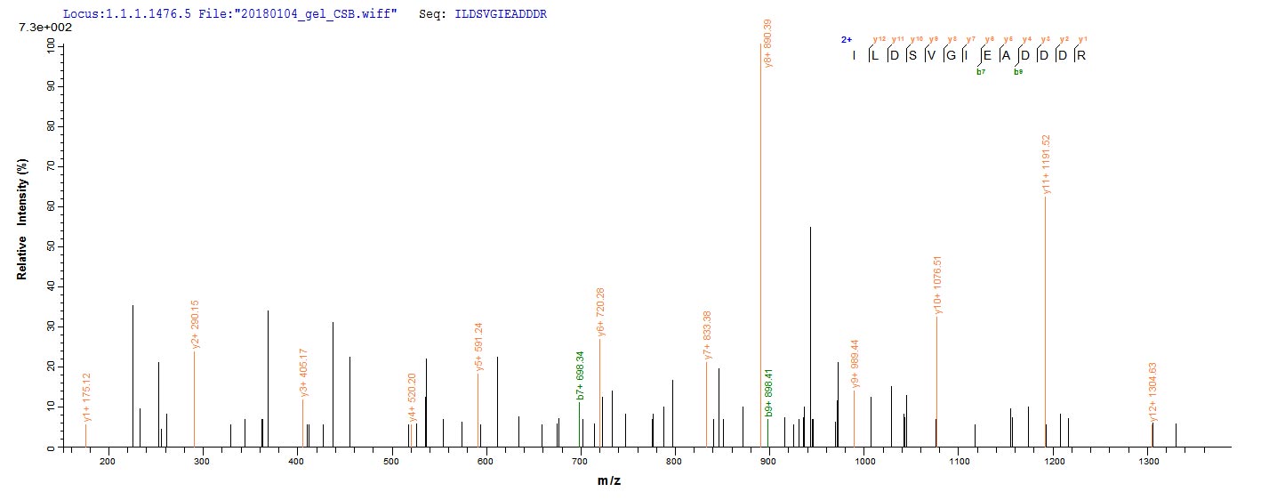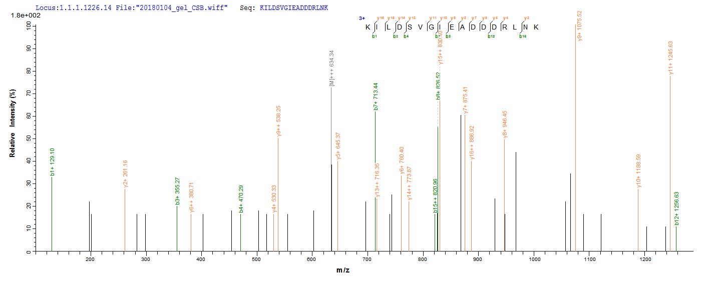 Based on the SEQUEST from database of E.coli host and target protein, the LC-MS/MS Analysis result of CSB-EP020342HU could indicate that this peptide derived from E.coli-expressed Homo sapiens (Human) RPLP2.