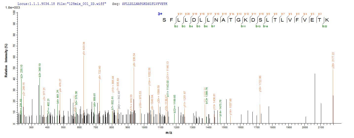 Based on the SEQUEST from database of E.coli host and target protein, the LC-MS/MS Analysis result of CSB-EP006621HU could indicate that this peptide derived from E.coli-expressed Homo sapiens (Human) DDX3X.