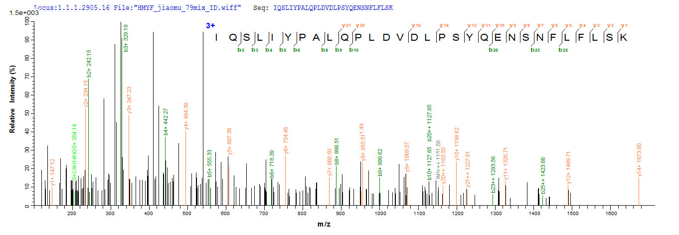 Based on the SEQUEST from database of E.coli host and target protein, the LC-MS/MS Analysis result of CSB-EP001014HU could indicate that this peptide derived from E.coli-expressed Homo sapiens (Human) AADAC.
