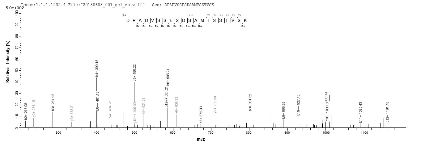 • Based on the SEQUEST from database of E.coli host and target protein, the LC-MS/MS Analysis result of CSB-EP741052HU could indicate that this peptide derived from E.coli-expressed Homo sapiens (Human) ATG14.