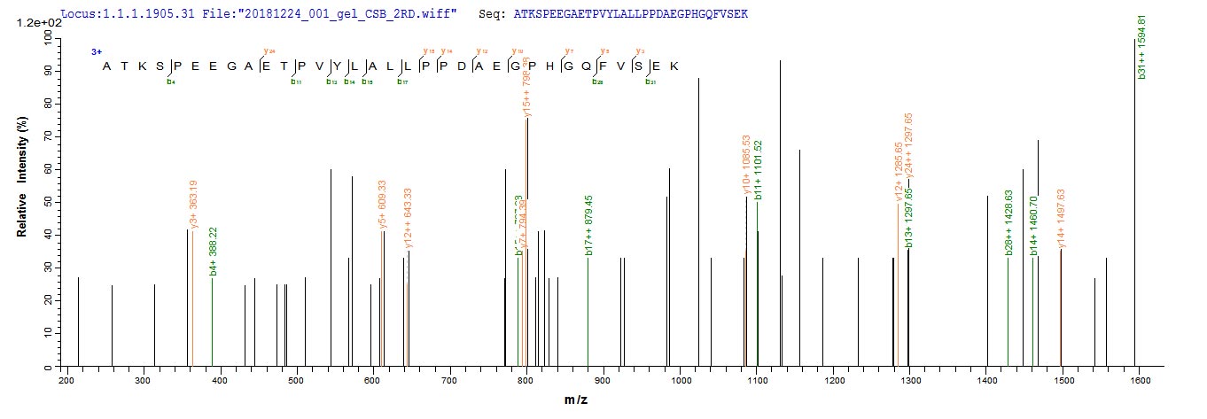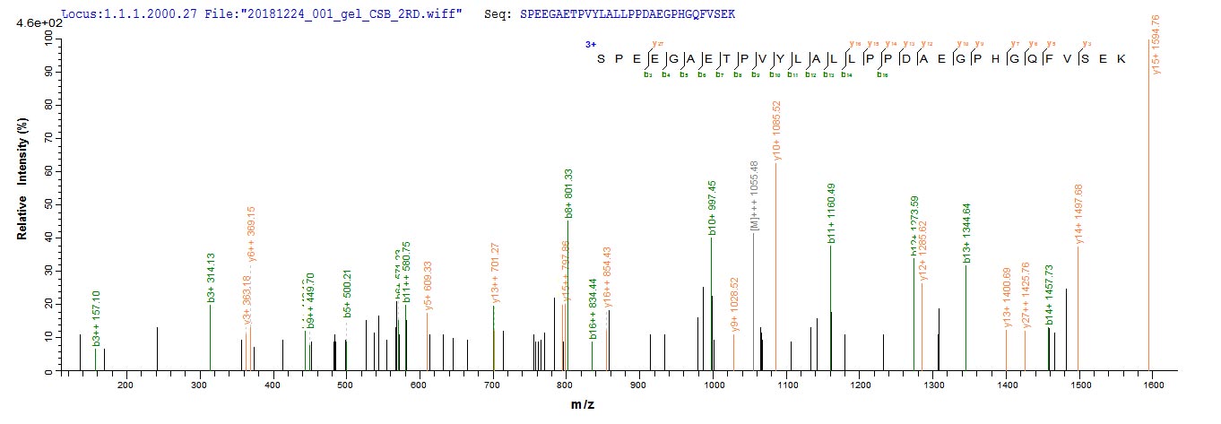 Based on the SEQUEST from database of E.coli host and target protein, the LC-MS/MS Analysis result of CSB-EP004586HUa0 could indicate that this peptide derived from E.coli-expressed Homo sapiens (Human) CBR1.