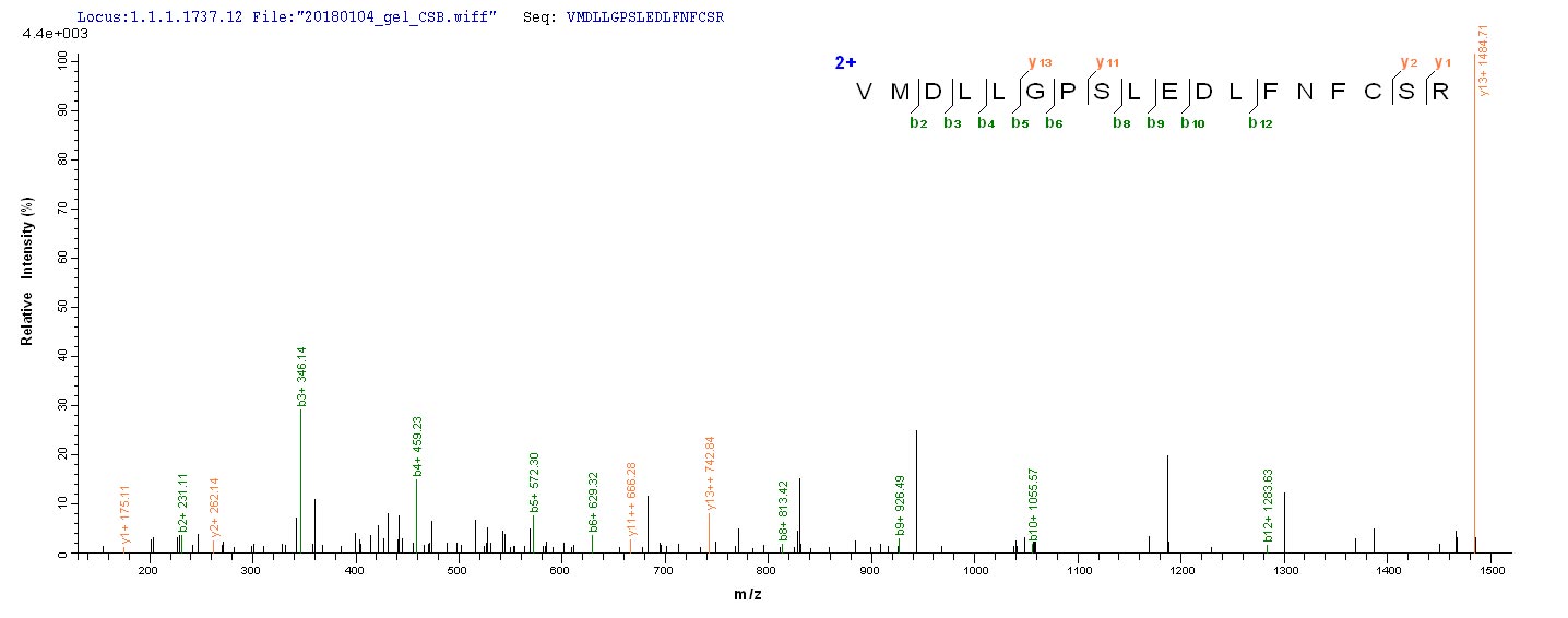 Based on the SEQUEST from database of E.coli host and target protein, the LC-MS/MS Analysis result of CSB-EP006065HU could indicate that this peptide derived from E.coli-expressed Homo sapiens (Human) CSNK1A1.
