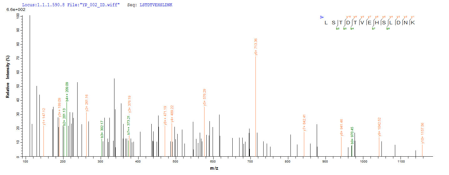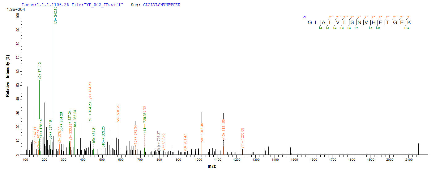 • Based on the SEQUEST from database of E.coli host and target protein, the LC-MS/MS Analysis result of CSB-EP004547HU could indicate that this peptide derived from E.coli-expressed Homo sapiens (Human) CASP2.