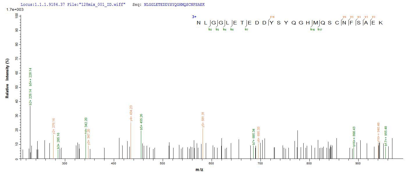 Based on the SEQUEST from database of E.coli host and target protein, the LC-MS/MS Analysis result of CSB-RP152794h could indicate that this peptide derived from E.coli-expressed Homo sapiens (Human) CTSF.