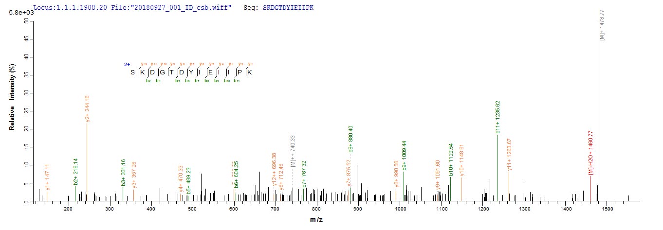 Based on the SEQUEST from database of E.coli host and target protein, the LC-MS/MS Analysis result of CSB-EP007929HU could indicate that this peptide derived from E.coli-expressed Homo sapiens (Human) F5.