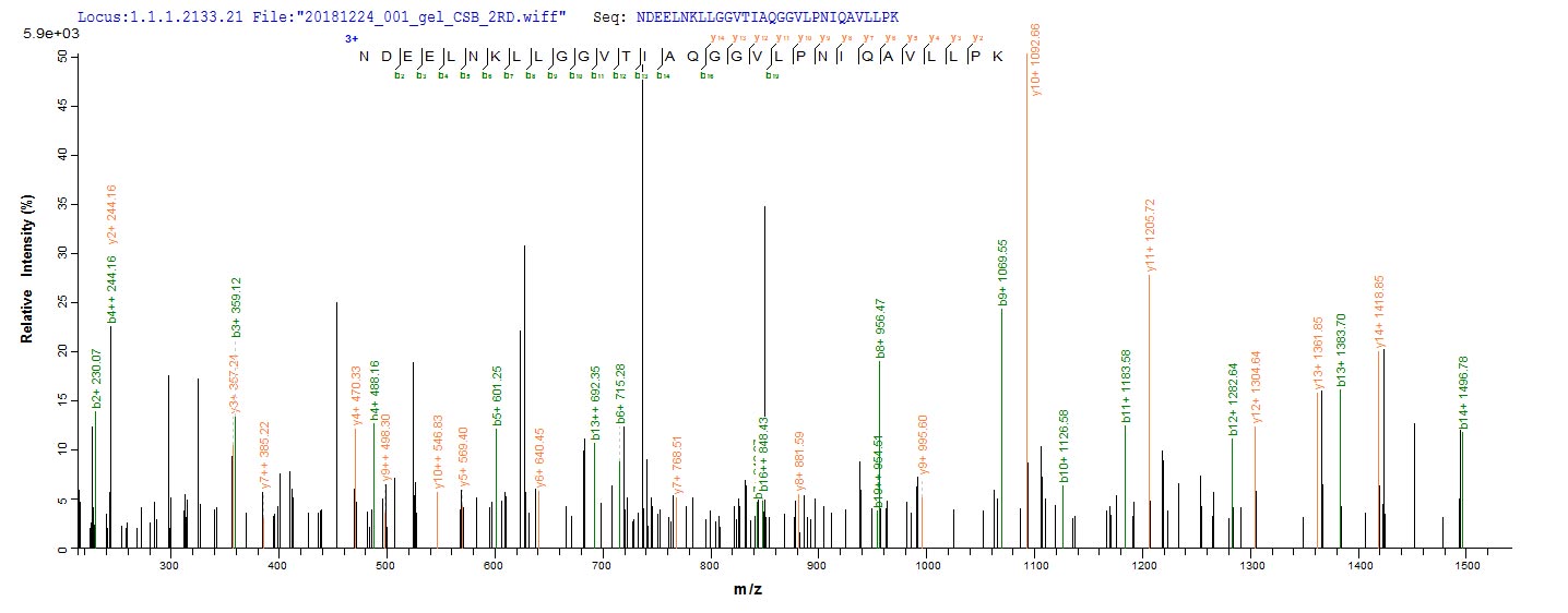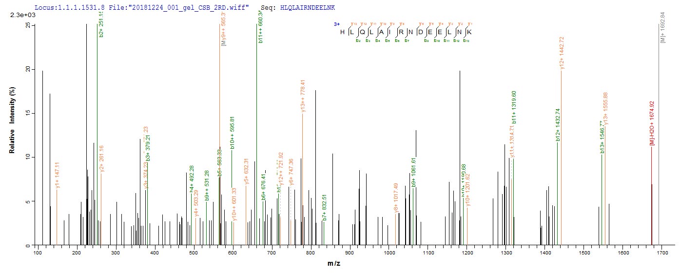 • Based on the SEQUEST from database of E.coli host and target protein, the LC-MS/MS Analysis result of CSB-EP010097HU1 could indicate that this peptide derived from E.coli-expressed Homo sapiens (Human) H2AFX,H2AX .