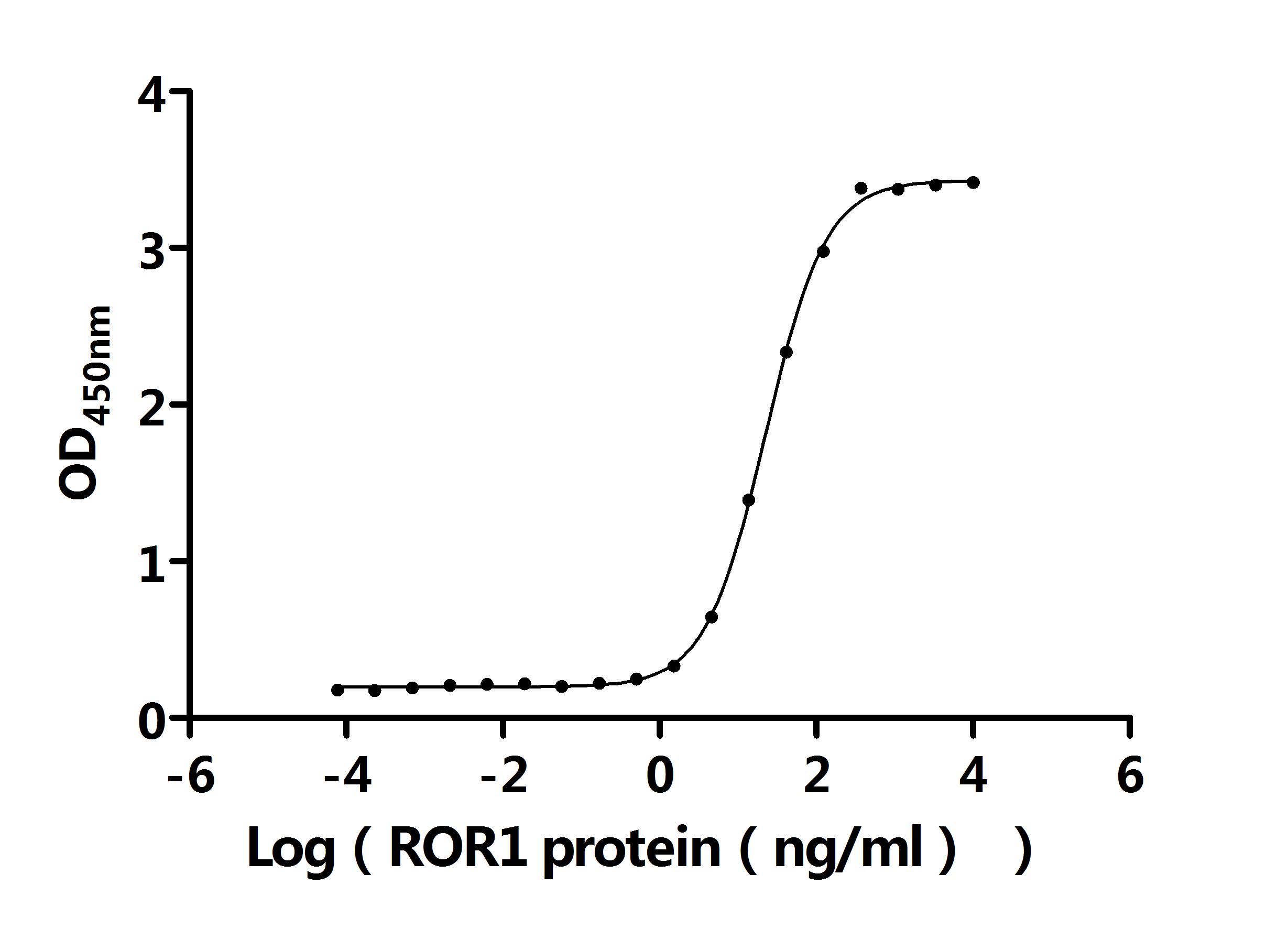 Measured by its binding ability in a functional ELISA.Immobilized Anti-ROR1 recombinant antibody(CSB-RA020067MA2HU) at 2 μg/ml can bind Human ROR1.The EC50 is 21.01-24.28 ng/mL. -