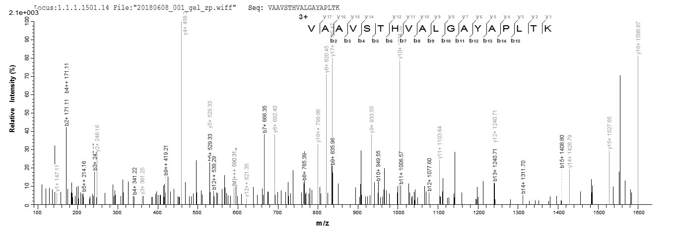 Based on the SEQUEST from database of E.coli host and target protein, the LC-MS/MS Analysis result of CSB-EP622779HU could indicate that this peptide derived from E.coli-expressed Homo sapiens (Human) IHH.