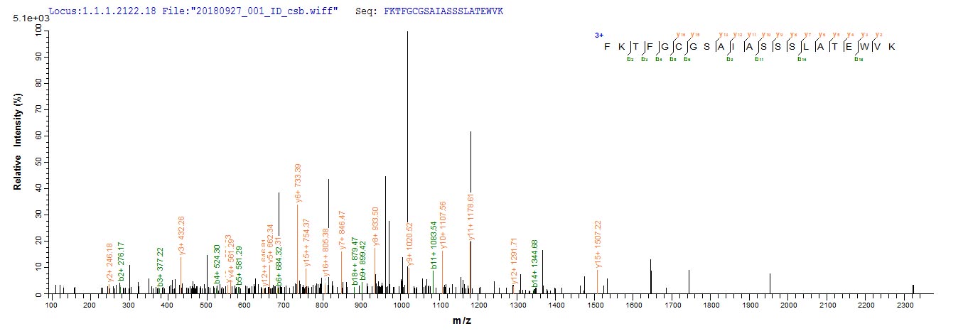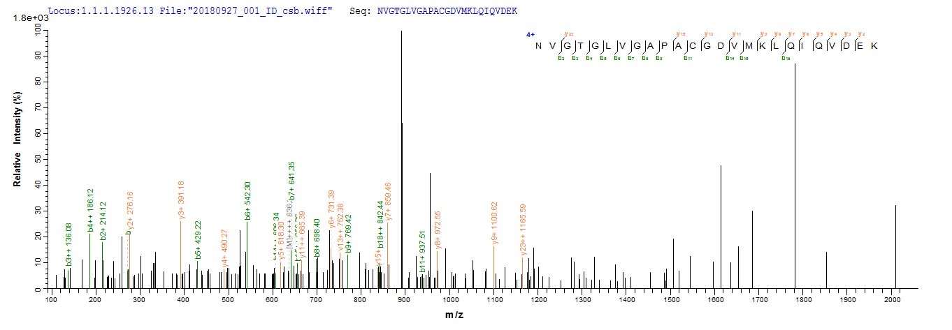 Based on the SEQUEST from database of E.coli host and target protein, the LC-MS/MS Analysis result of CSB-EP887955HU could indicate that this peptide derived from E.coli-expressed Homo sapiens (Human) ISCU.