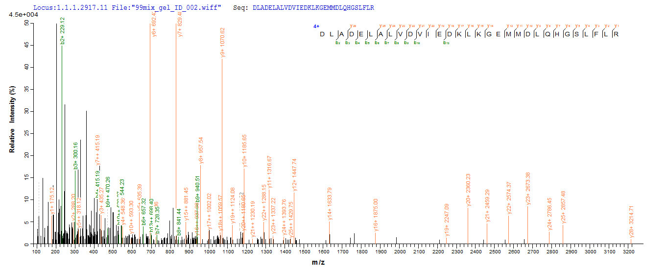 Based on the SEQUEST from database of E.coli host and target protein, the LC-MS/MS Analysis result of CSB-RP000494h could indicate that this peptide derived from E.coli-expressed Homo sapiens (Human) PIG19.