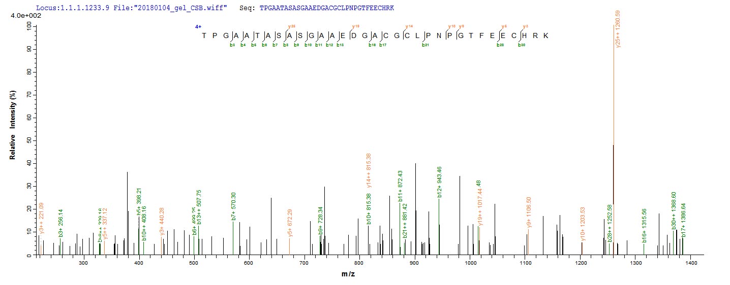Based on the SEQUEST from database of E.coli host and target protein, the LC-MS/MS Analysis result of CSB-EP024050HU could indicate that this peptide derived from E.coli-expressed Homo sapiens (Human) TOMM40.
