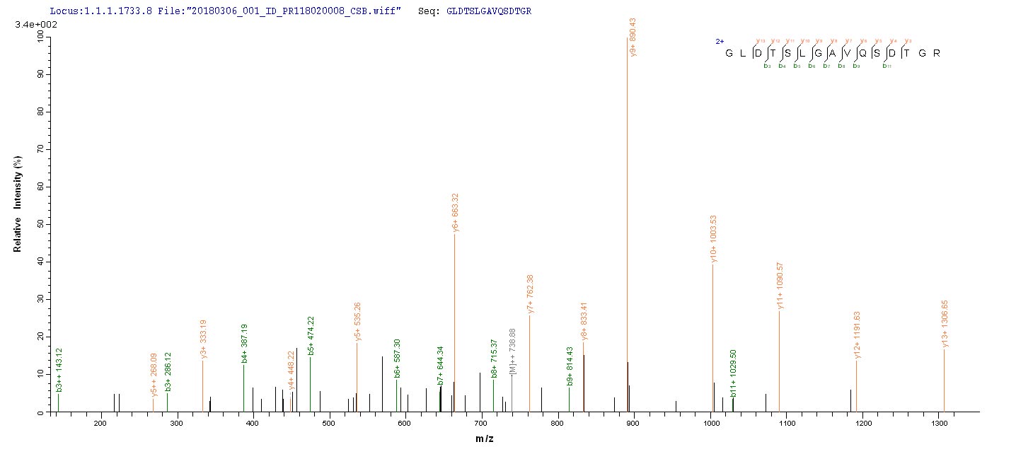 Based on the SEQUEST from database of Mammalian Cell host and target protein, the LC-MS/MS Analysis result of CSB-MP618776HU could indicate that this peptide derived from Mammalian Cell-expressed Homo sapiens (Human) MADCAM1.