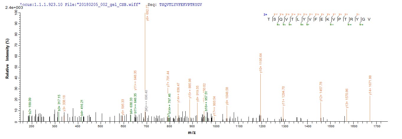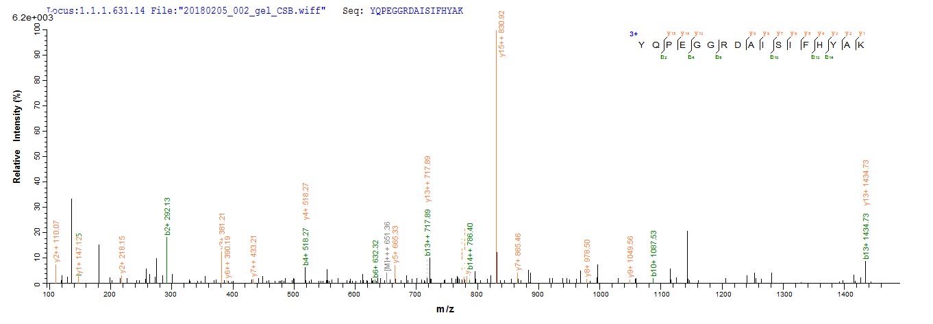 Based on the SEQUEST from database of E.coli host and target protein, the LC-MS/MS Analysis result of CSB-EP014774HU could indicate that this peptide derived from E.coli-expressed Homo sapiens (Human) MPZ.