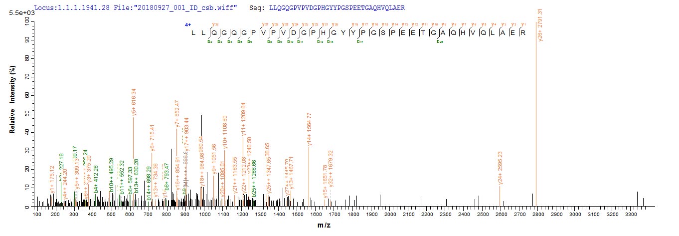 Based on the SEQUEST from database of E.coli host and target protein, the LC-MS/MS Analysis result of CSB-EP016086HU could indicate that this peptide derived from E.coli-expressed Homo sapiens (Human) NRL.
